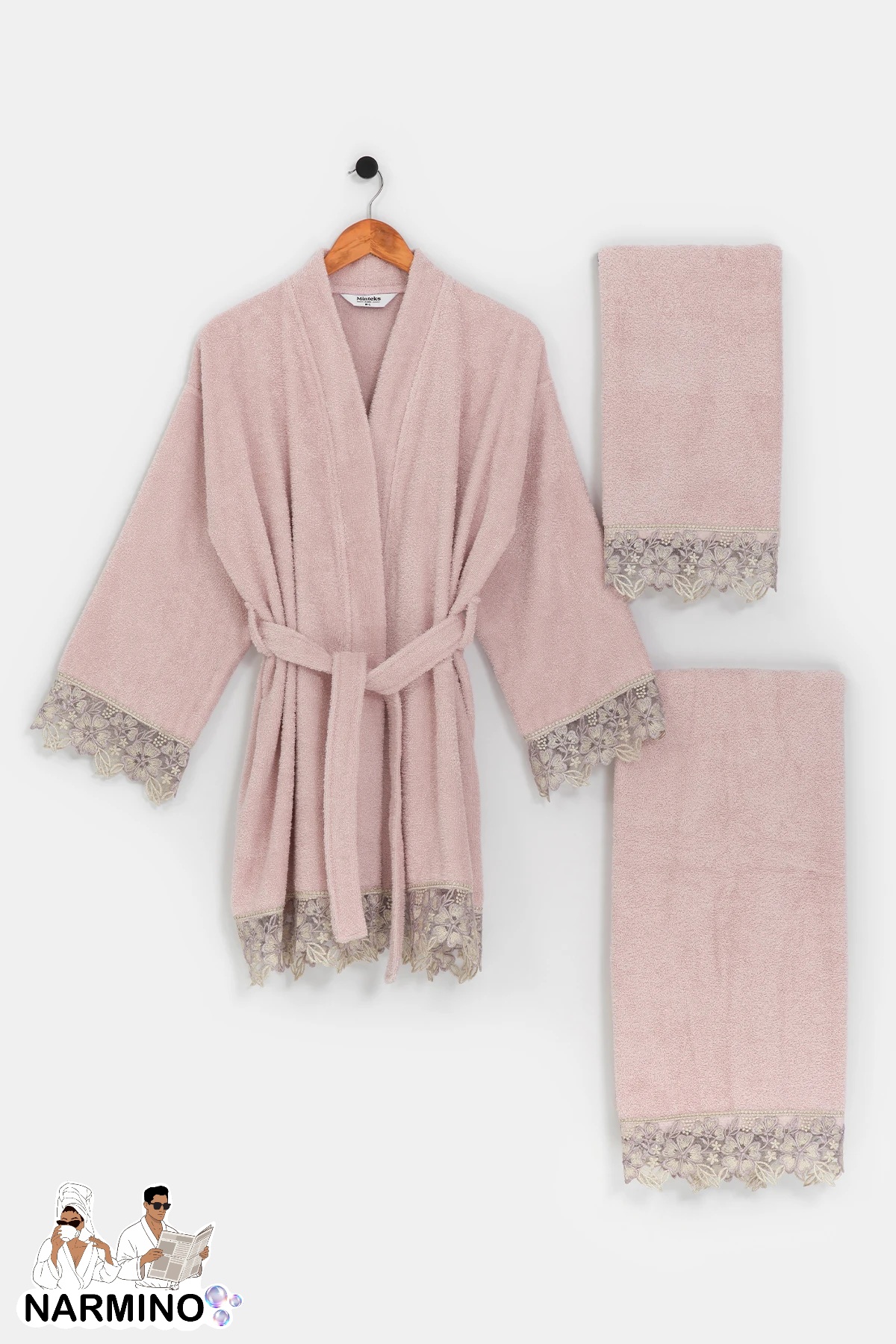 حوله/تنپوش پالتویی عروس سه تیکه گیپور کاری شده ۱۰۰ درصد نخ اعلا نرمینو