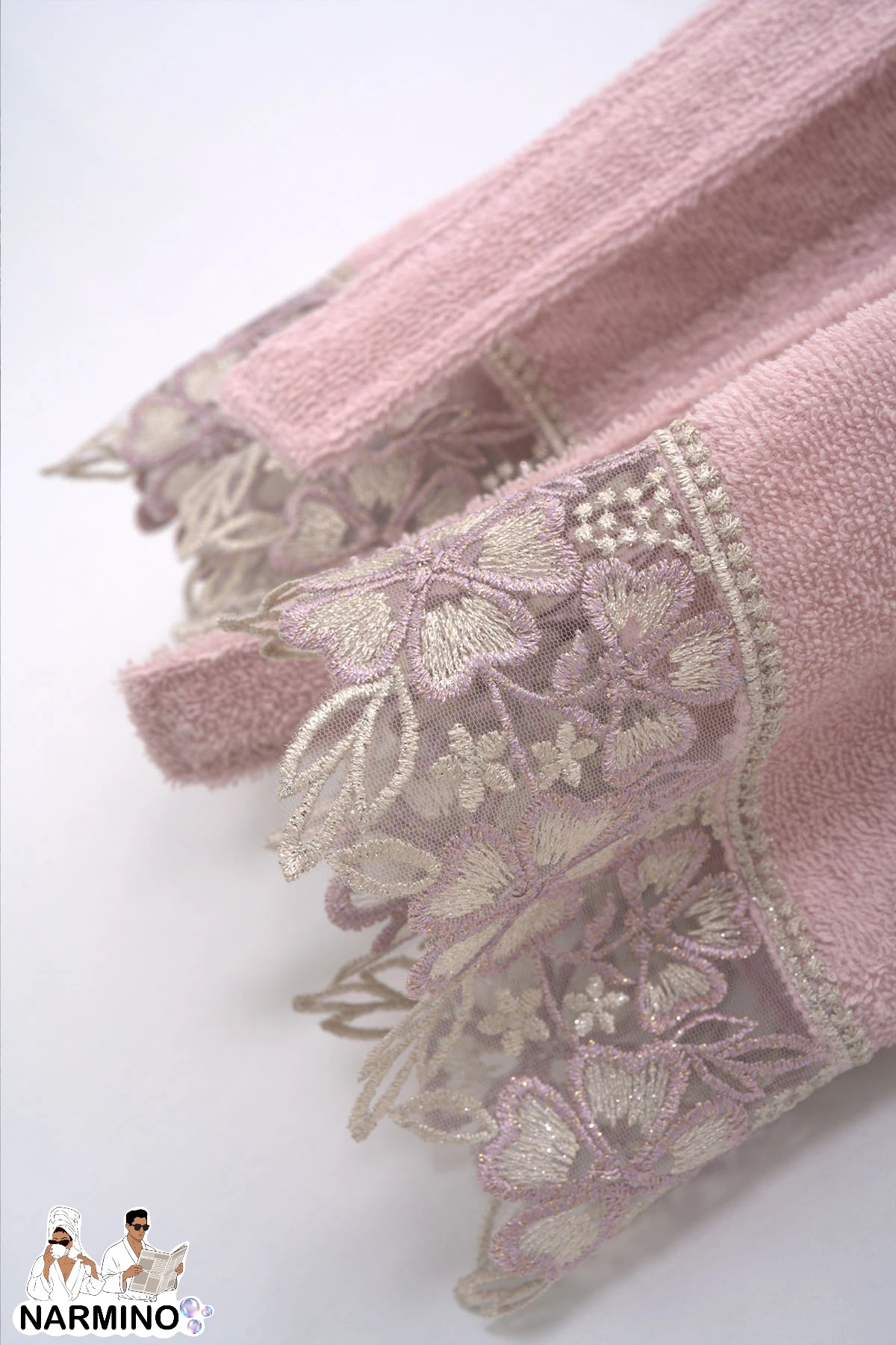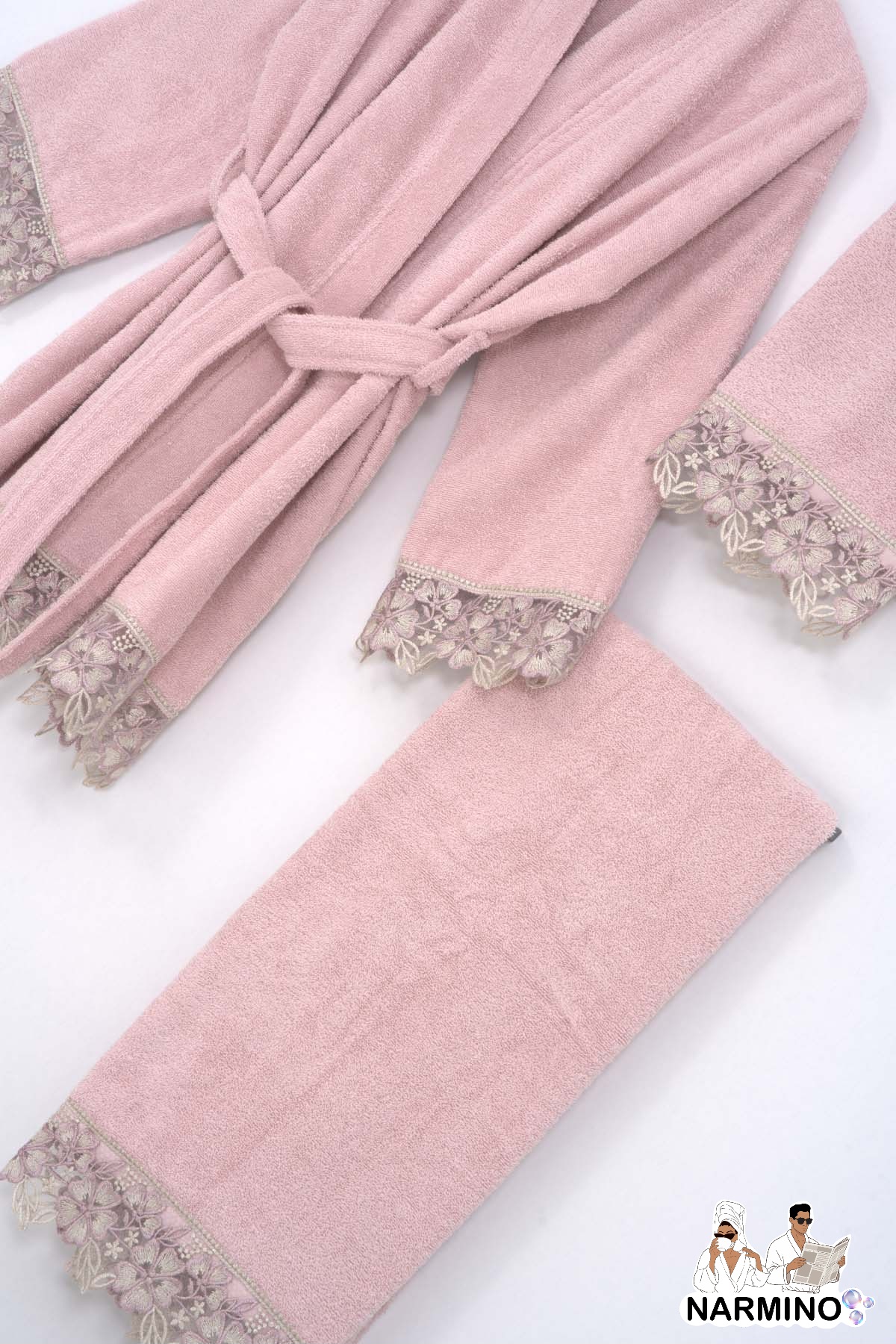 حوله/تنپوش پالتویی عروس سه تیکه گیپور کاری شده ۱۰۰ درصد نخ اعلا نرمینو